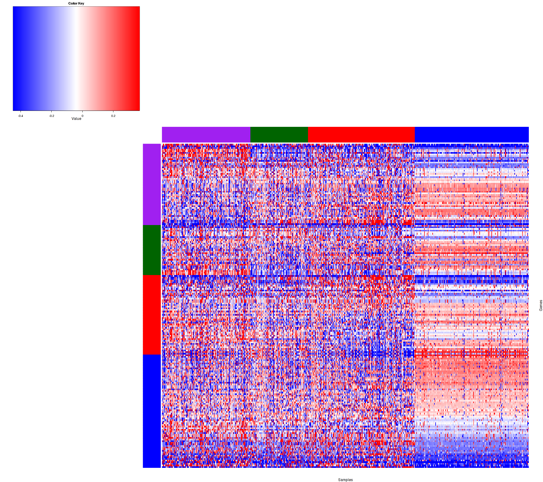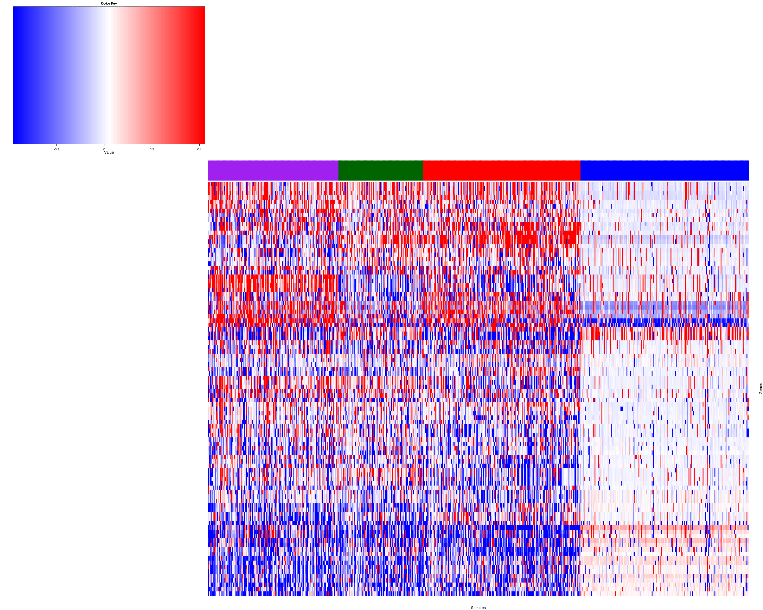 Figure 1. Get High-res Image Samples were separated into 4 clusters. Shown are 625 samples and 200 marker focal events. The color bar of the row indicates the marker focal events for the corresponding cluster.