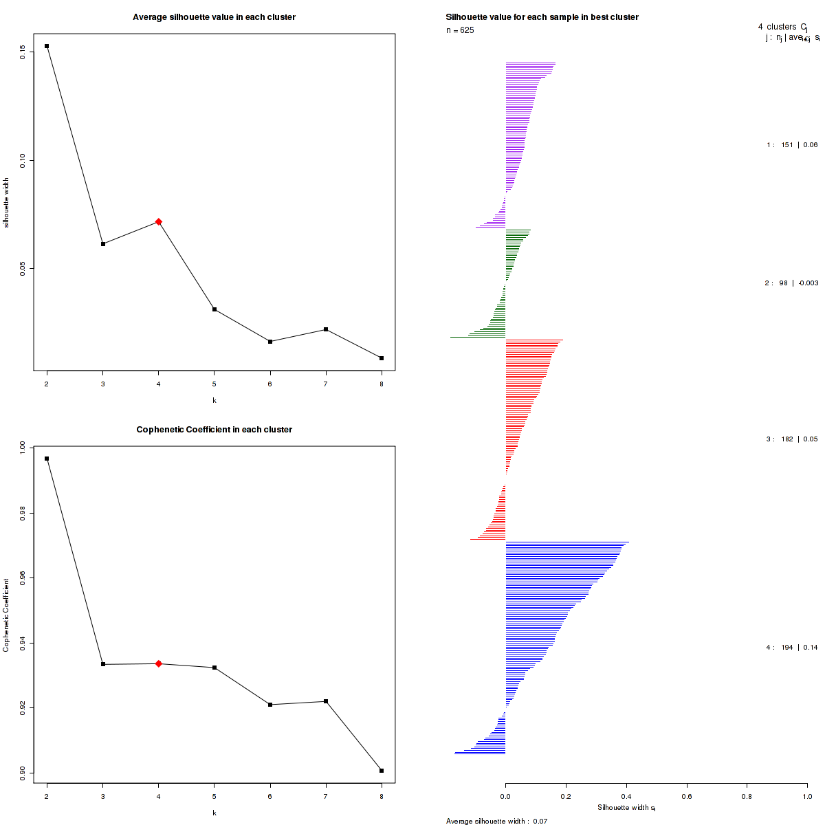Table 1. Get Full Table List of samples with 4 subtypes and silhouette width.