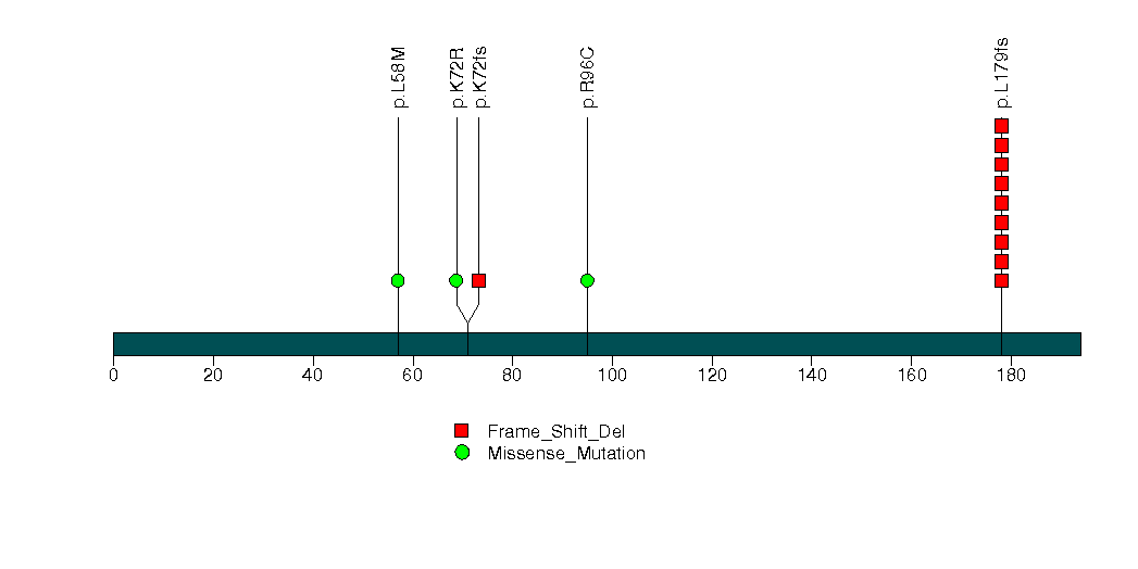 Figure S13. This figure depicts the distribution of mutations and mutation types across the C7orf50 significant gene.