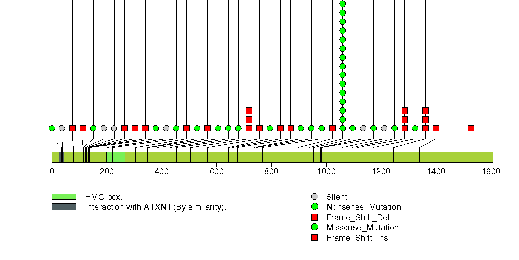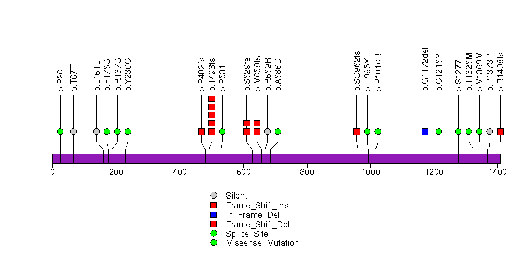 Figure S26. This figure depicts the distribution of mutations and mutation types across the CIC significant gene.
