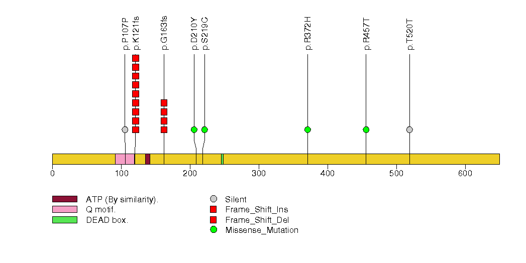 Figure S25. This figure depicts the distribution of mutations and mutation types across the DDX17 significant gene.