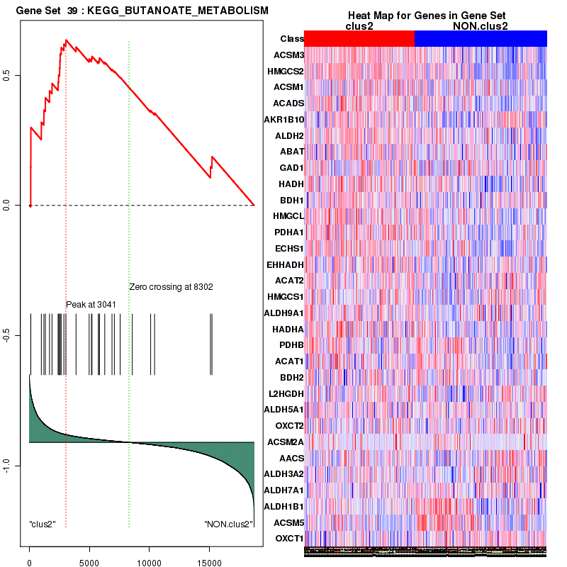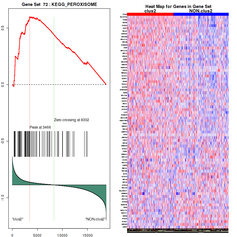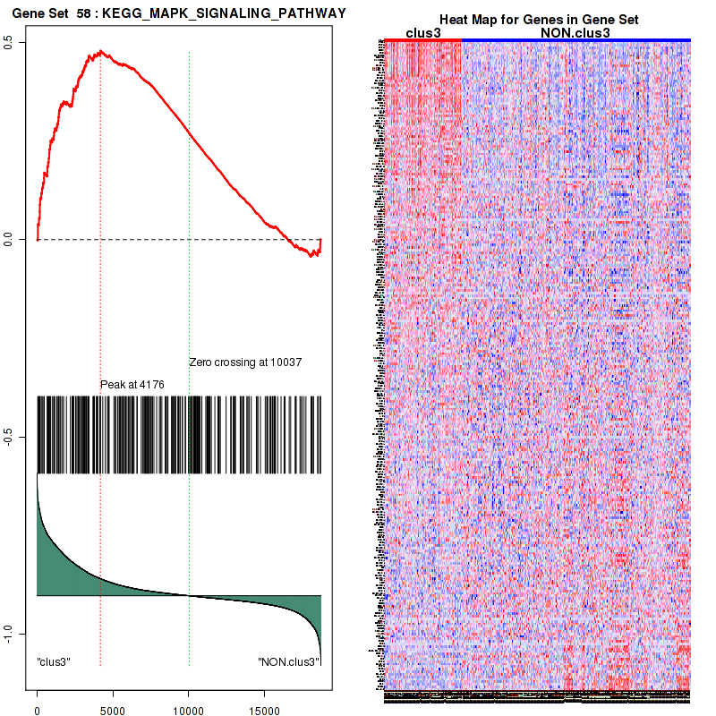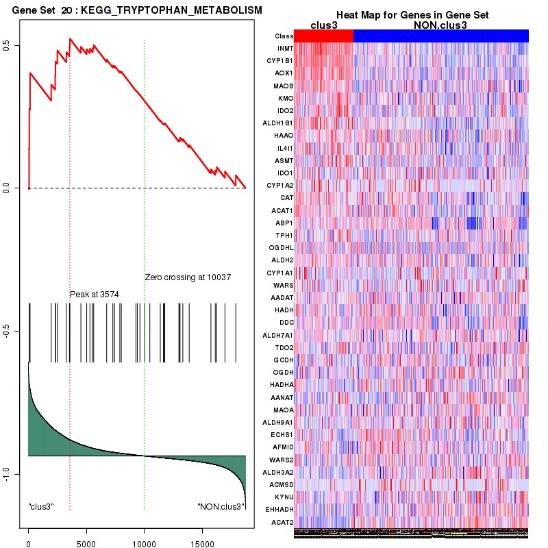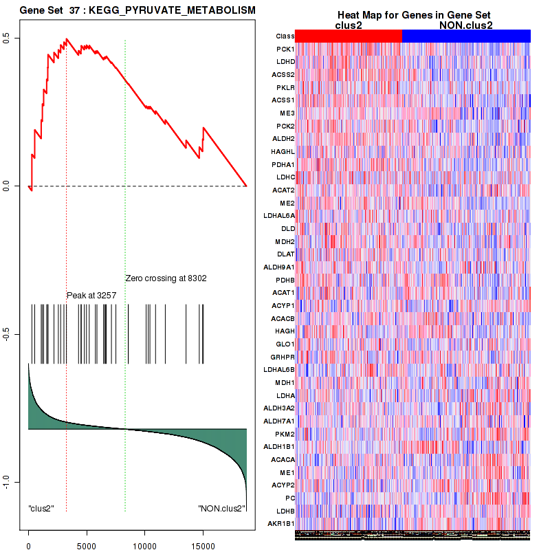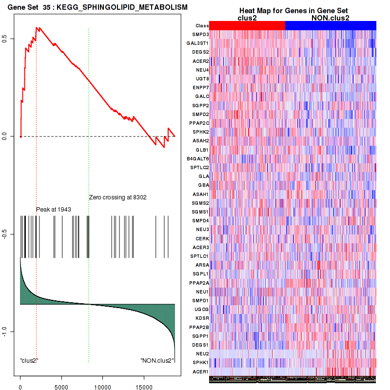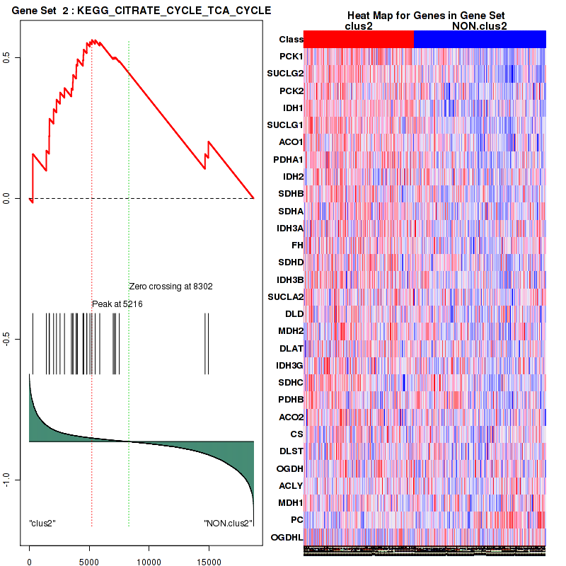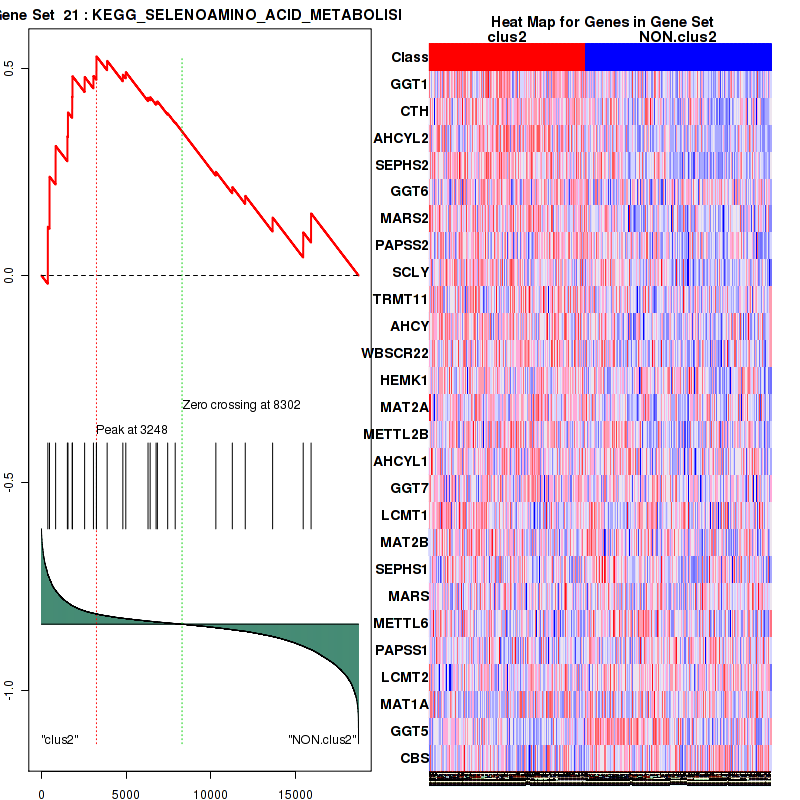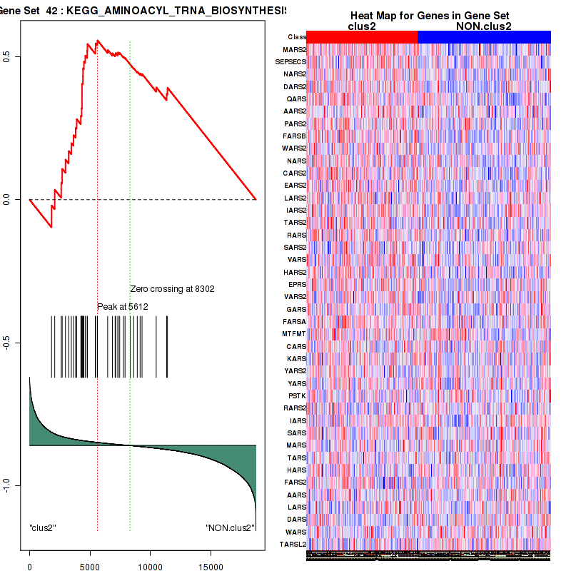 Table S30. Get Full Table This table shows a Running Enrichment Score (RES) of each gene in this pathway, that is, the enrichment score at this point in the ranked list of genes. All genes are ranked by Signal-to-Noise (S2N), a measure of similarity as default and are used to obtain ES matrix of all genes. In this way, GSEA tool uses expression pattern of not only overlapped genes but also not-overlapped genes to produce ES matrix.