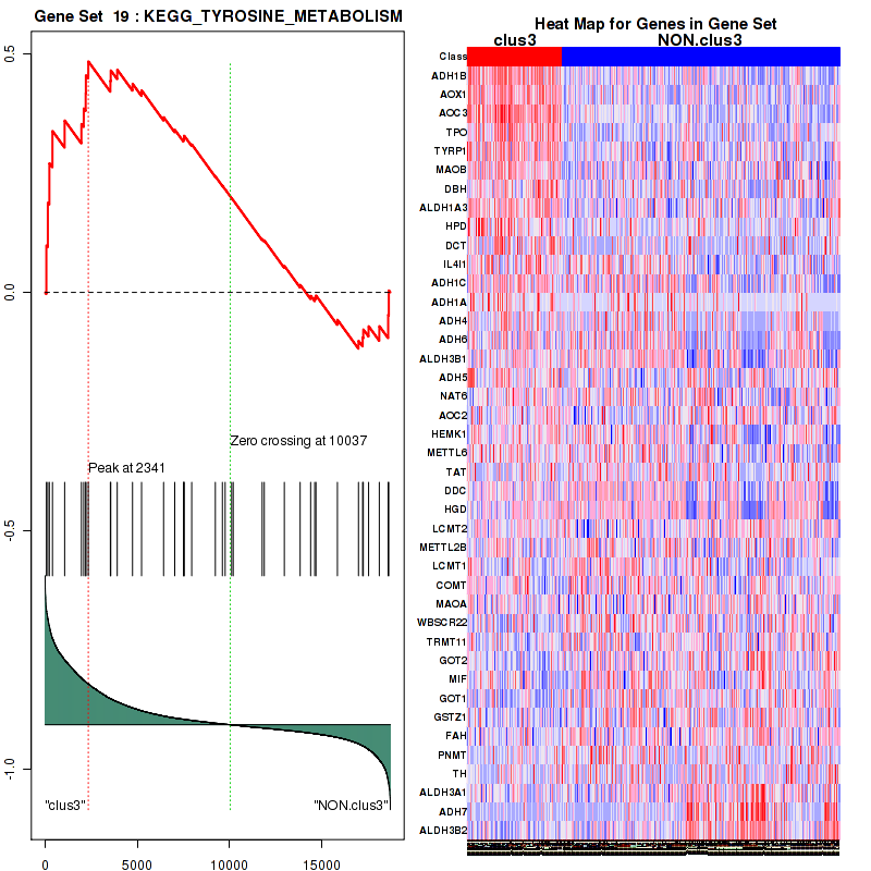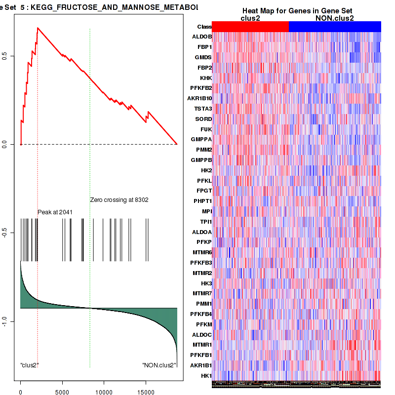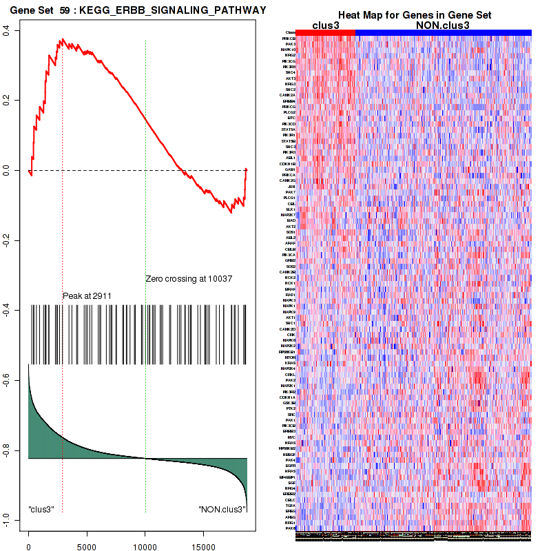 Table S1. Get Full Table This table shows a Running Enrichment Score (RES) of each gene in this pathway, that is, the enrichment score at this point in the ranked list of genes. All genes are ranked by Signal-to-Noise (S2N), a measure of similarity as default and are used to obtain ES matrix of all genes. In this way, GSEA tool uses expression pattern of not only overlapped genes but also not-overlapped genes to produce ES matrix.