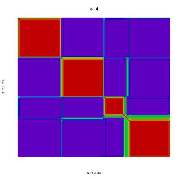 Figure 4. Get High-res Image The consensus matrix after clustering shows 4 clusters with limited overlap between clusters.