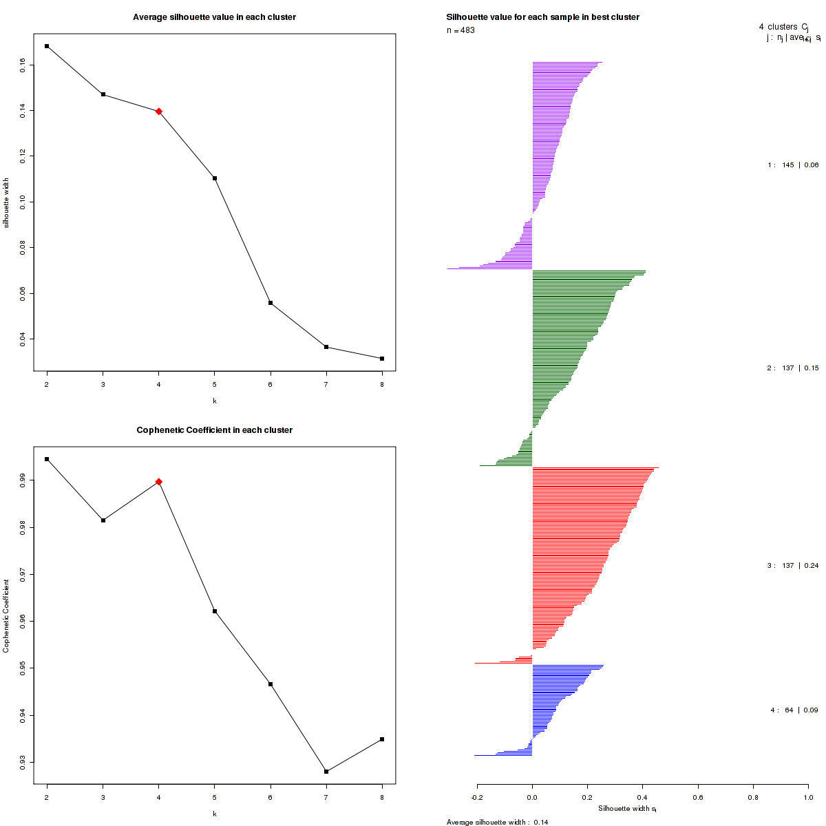 Table 1. Get Full Table List of samples with 4 subtypes and silhouette width.