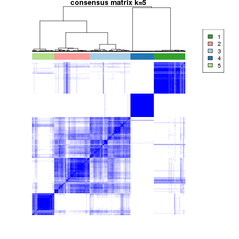 Figure 4. Get High-res Image The consensus matrix after clustering shows 5 clusters with limited overlap between clusters.