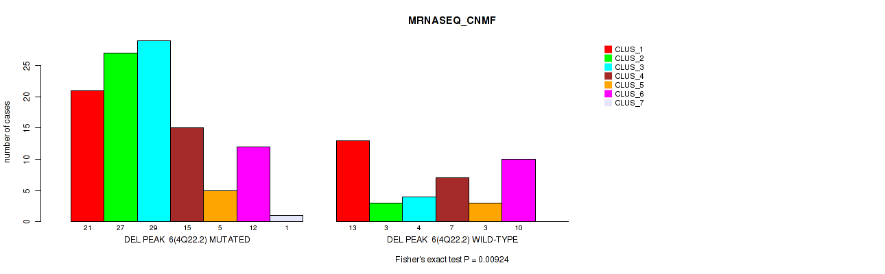 • del_4q22.2 cnv correlated to 'CN_CNMF',  'MRNASEQ_CNMF',  'MRNASEQ_CHIERARCHICAL',  'MIRSEQ_CNMF',  'MIRSEQ_CHIERARCHICAL',  'MIRSEQ_MATURE_CNMF', and 'MIRSEQ_MATURE_CHIERARCHICAL'.