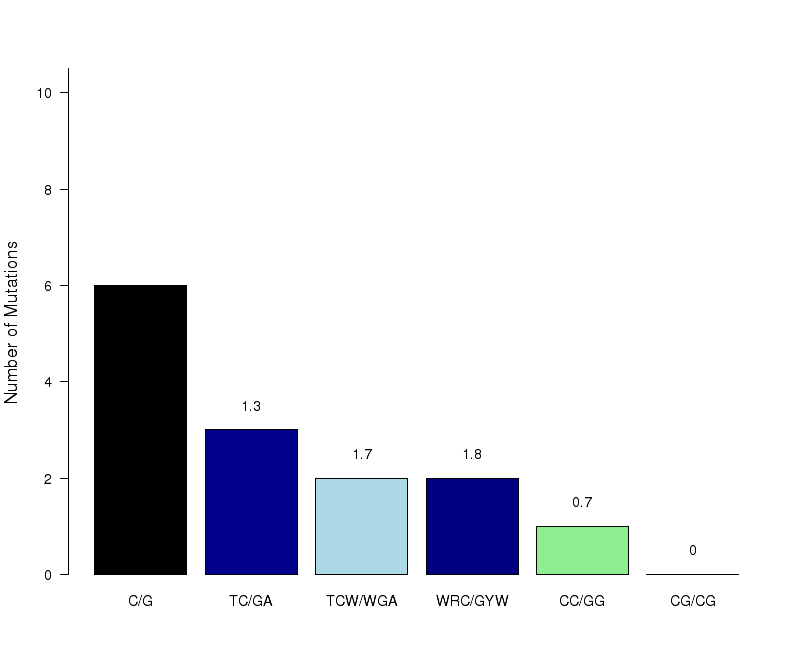 Figure 8. Get High-res Image The number of mutations categorized into three possible types of substitutions at the tCw motif (complementary mutations included) within C- or G-coordinated clusters. Numbers are calculated using the “Totals” row in the corresponding columns of the “*_sorted_sum_G_C_clusters.txt” file. Mutations caused by cytidine deamination in stretches of ssDNA caused by APOBEC mutagenesis are expected to be predominantly C-->T or C-->G with very few C-->A. Base substitution categories are shown within TCW context.