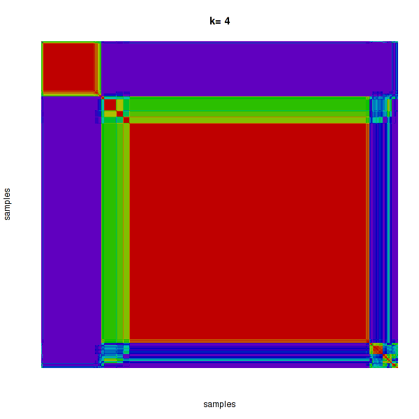 Figure 4. Get High-res Image The consensus matrix after clustering shows 4 clusters with limited overlap between clusters.