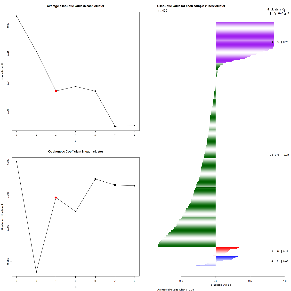 Table 1. Get Full Table List of samples with 4 subtypes and silhouette width.