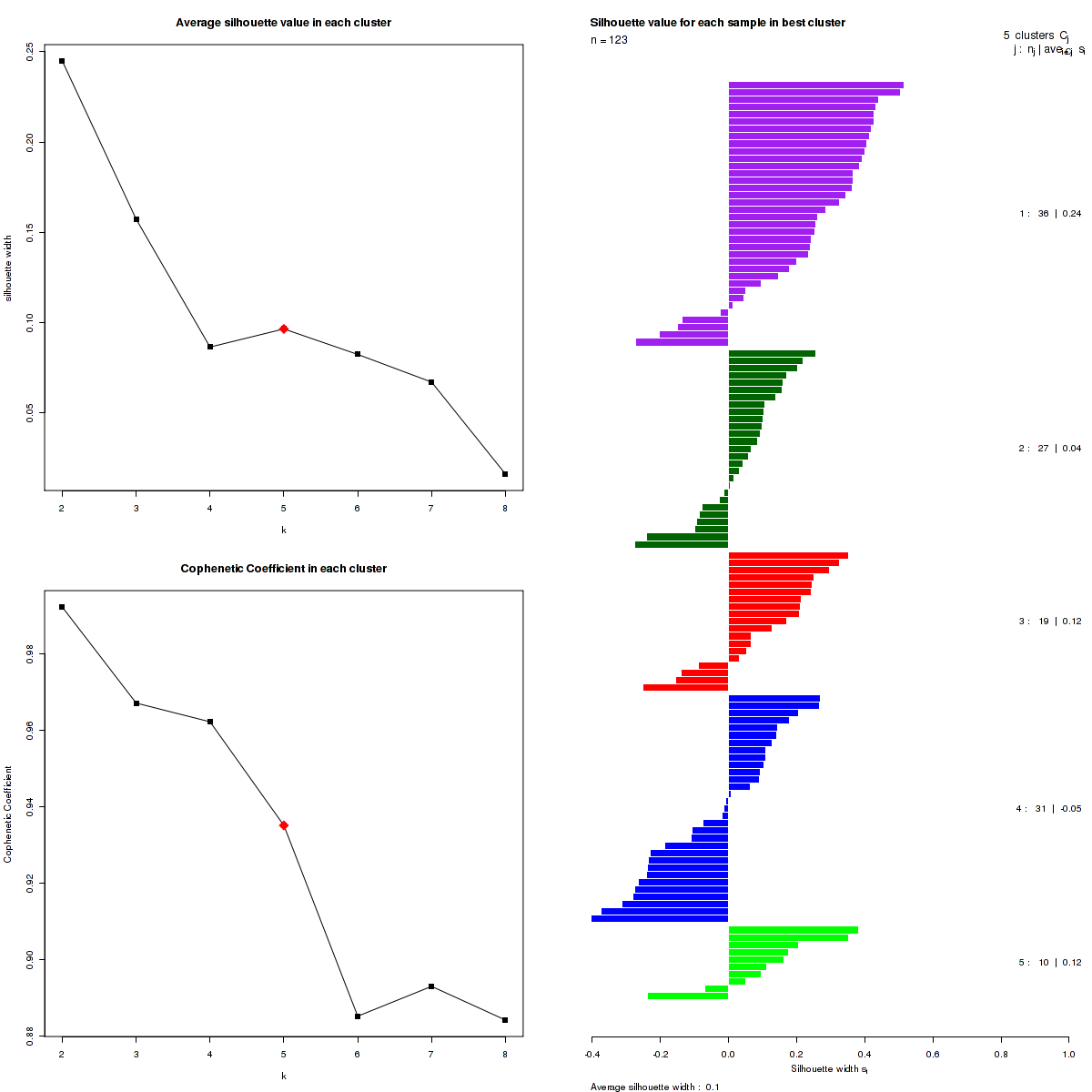 Table 1. Get Full Table List of samples with 5 subtypes and silhouette width.
