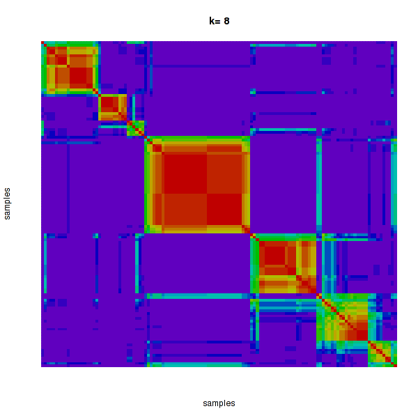 Figure 4. Get High-res Image The consensus matrix after clustering shows 8 clusters with limited overlap between clusters.