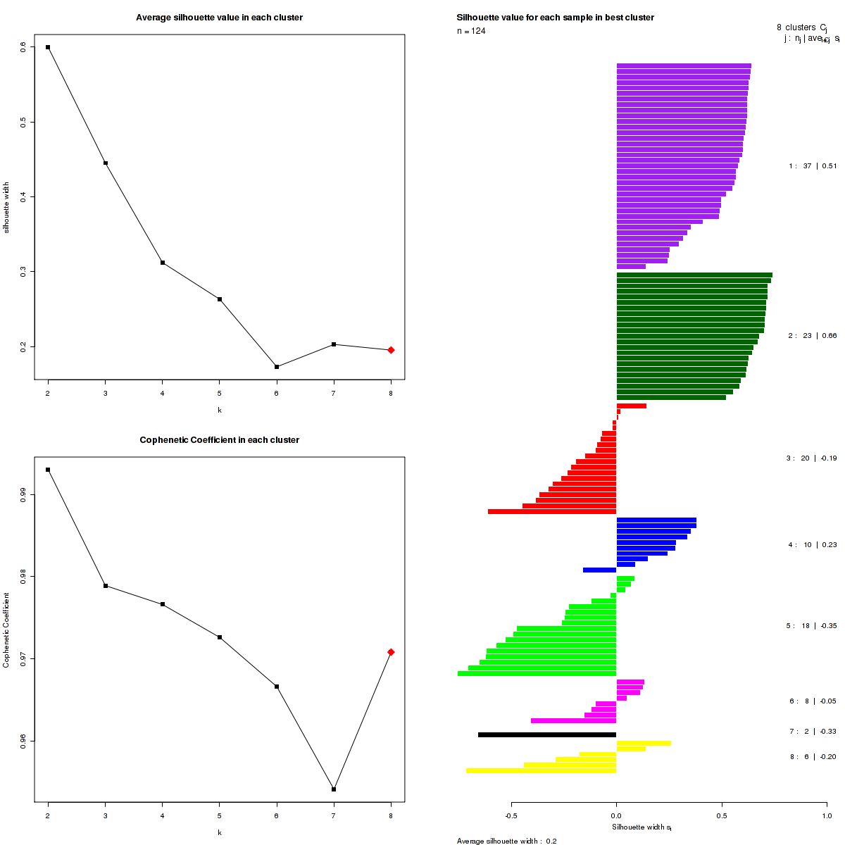 Table 1. Get Full Table List of samples with 8 subtypes and silhouette width.