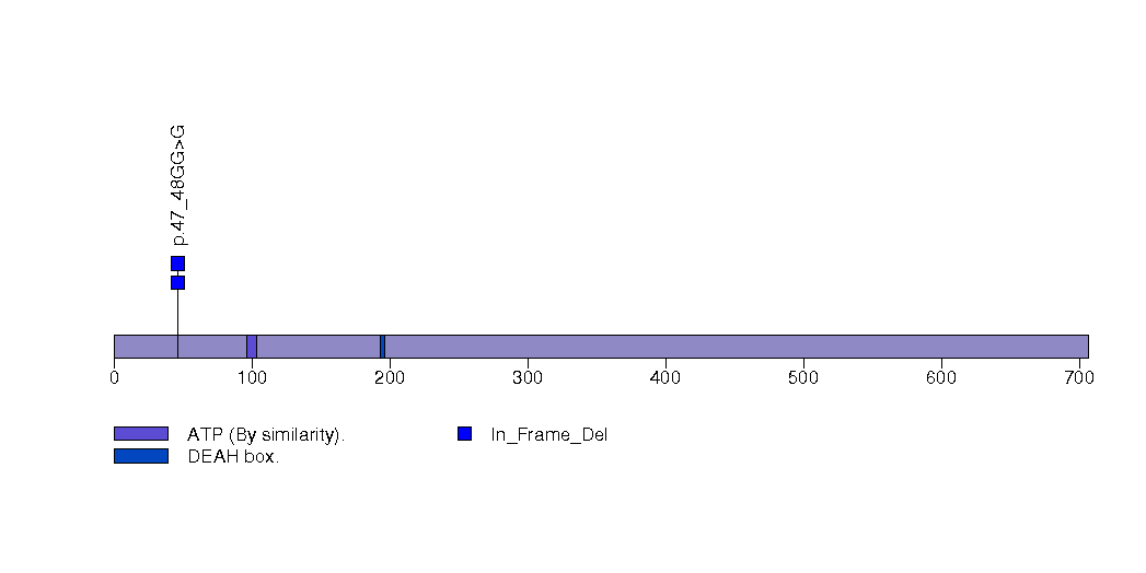 Figure S8. This figure depicts the distribution of mutations and mutation types across the DHX33 significant gene.