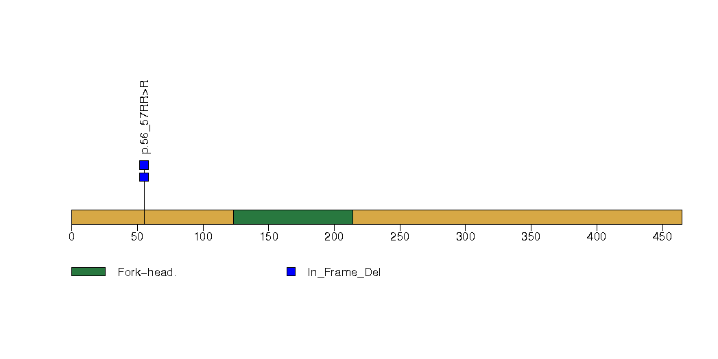 Figure S6. This figure depicts the distribution of mutations and mutation types across the FOXD1 significant gene.