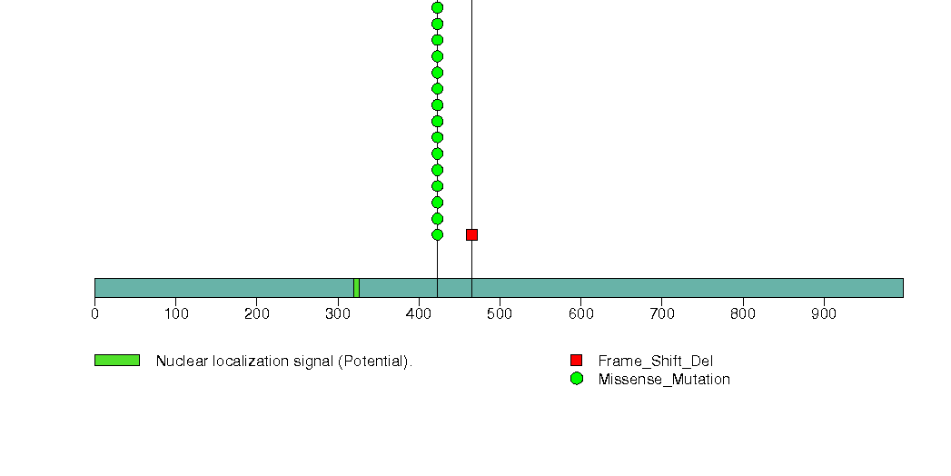 Figure S1. This figure depicts the distribution of mutations and mutation types across the GTF2I significant gene.