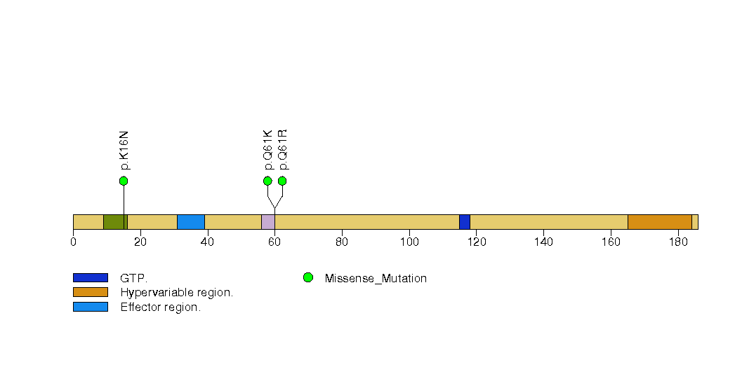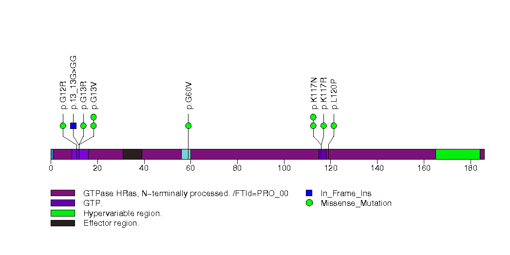 Figure S2. This figure depicts the distribution of mutations and mutation types across the HRAS significant gene.