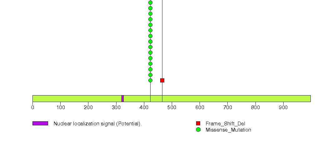 Figure S1. This figure depicts the distribution of mutations and mutation types across the GTF2I significant gene.