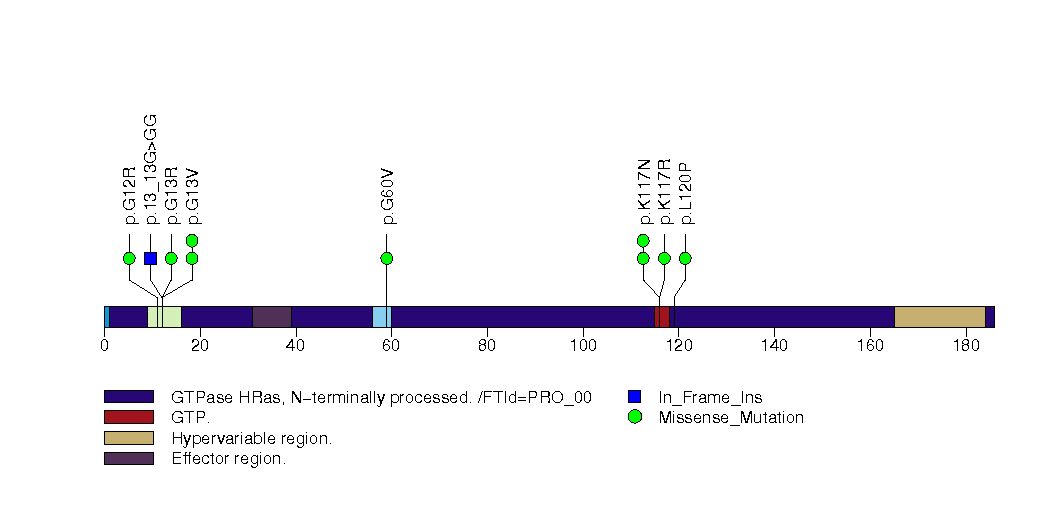 Figure S2. This figure depicts the distribution of mutations and mutation types across the HRAS significant gene.
