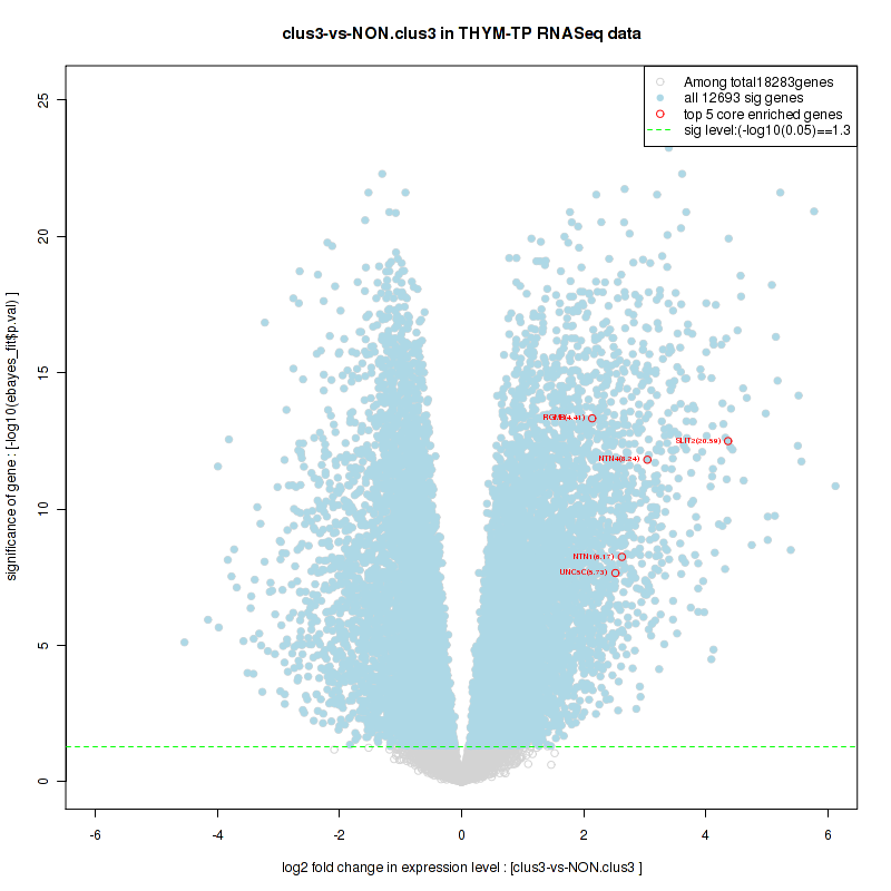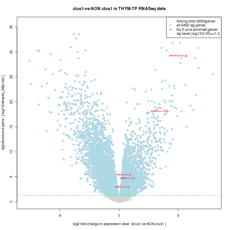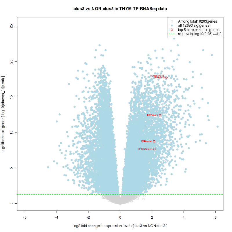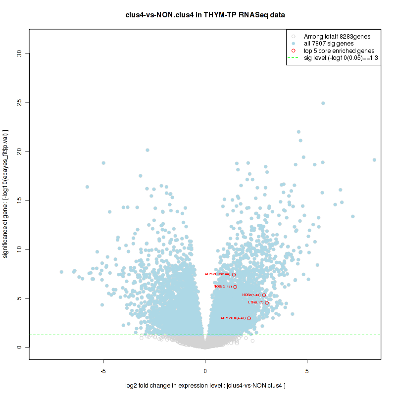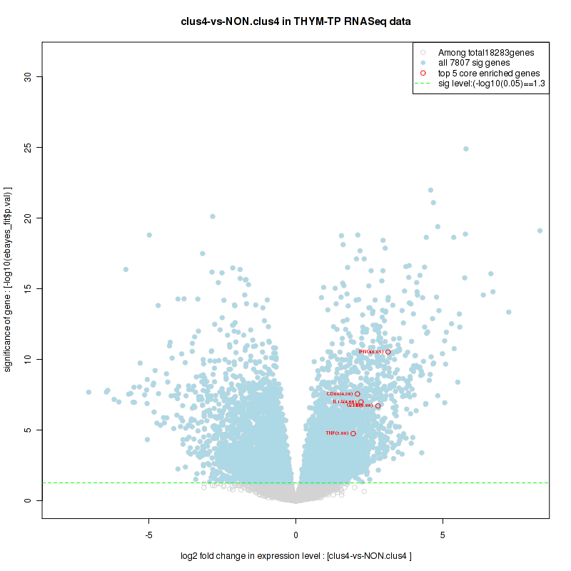 Figure S78. Get High-res Image For the top 5 core enriched genes in the pathway: KEGG ALLOGRAFT REJECTION, this volcano plot shows how much they are up/down-regulated and significant. The significance was calculated by empirical bayesian fit