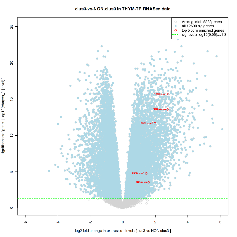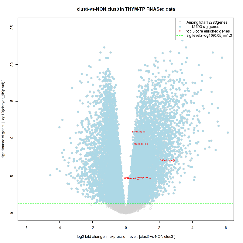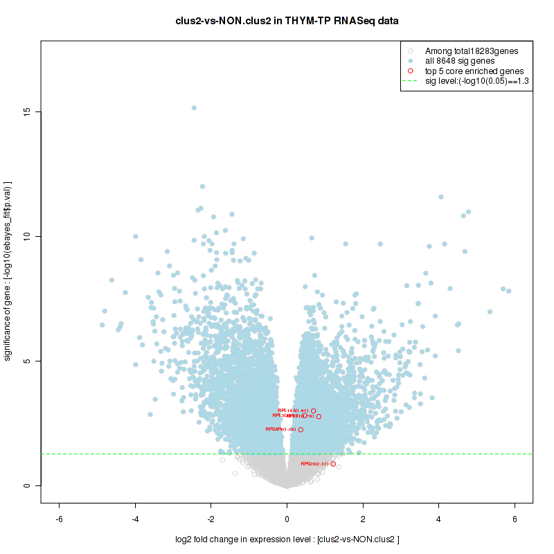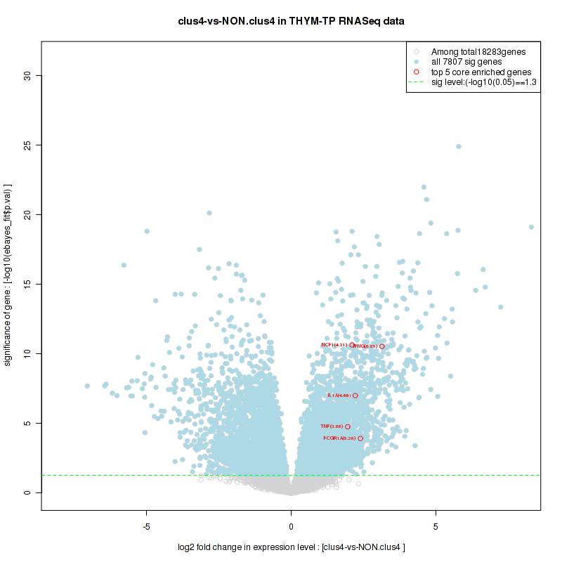 Figure S80. Get High-res Image For the top 5 core enriched genes in the pathway: KEGG GRAFT VERSUS HOST DISEASE, this volcano plot shows how much they are up/down-regulated and significant. The significance was calculated by empirical bayesian fit