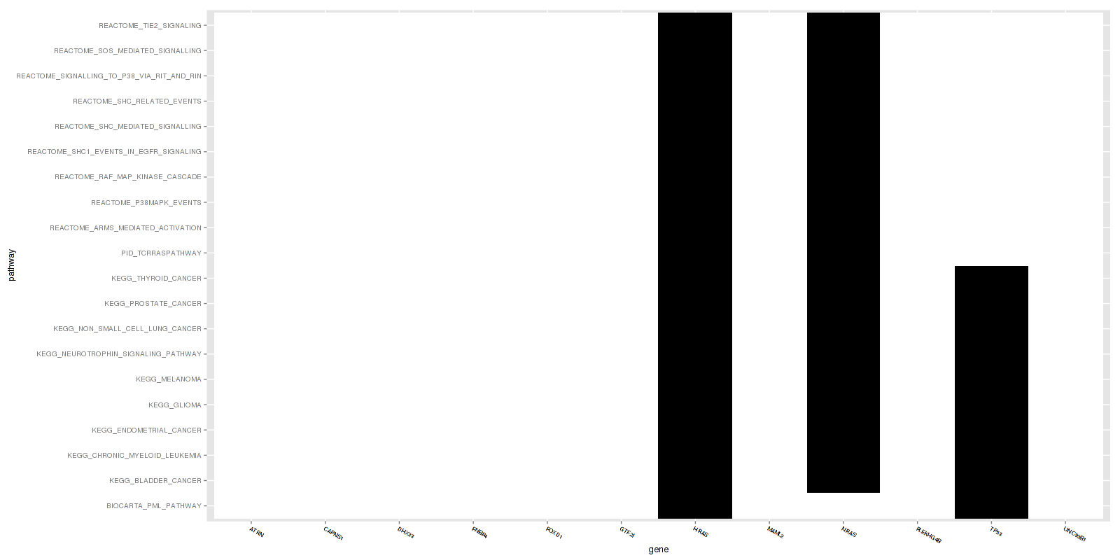 | KEGG MELANOMA | gene.list | 71 | 45885 | 45956 | 12 | 3 | 7.696e-07 | 1.579e-04 |