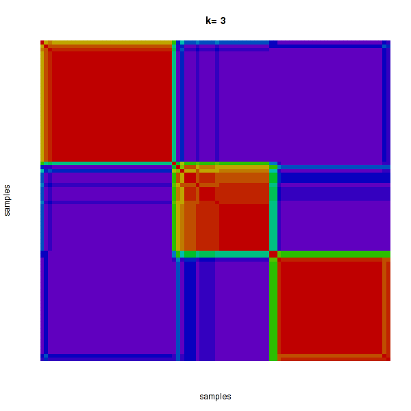 Figure 4. Get High-res Image The consensus matrix after clustering shows 3 clusters with limited overlap between clusters.