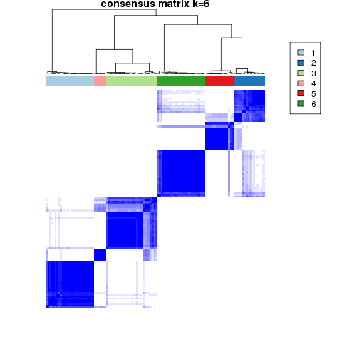 Figure 4. Get High-res Image The consensus matrix after clustering shows 6 clusters with limited overlap between clusters.