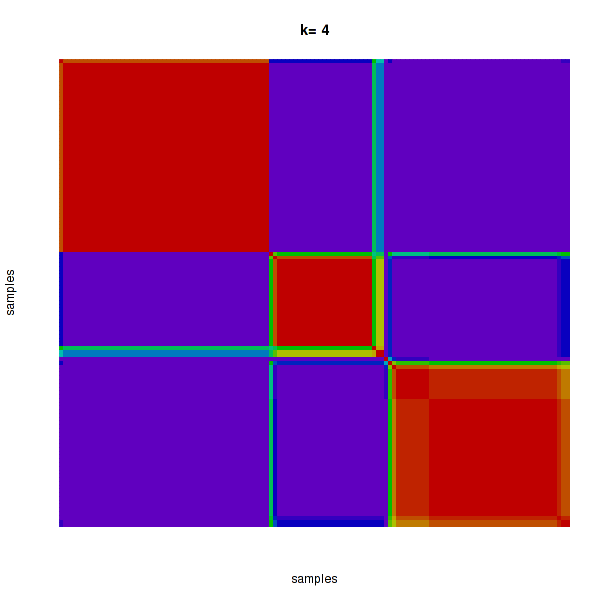 Figure 4. Get High-res Image The consensus matrix after clustering shows 4 clusters with limited overlap between clusters.