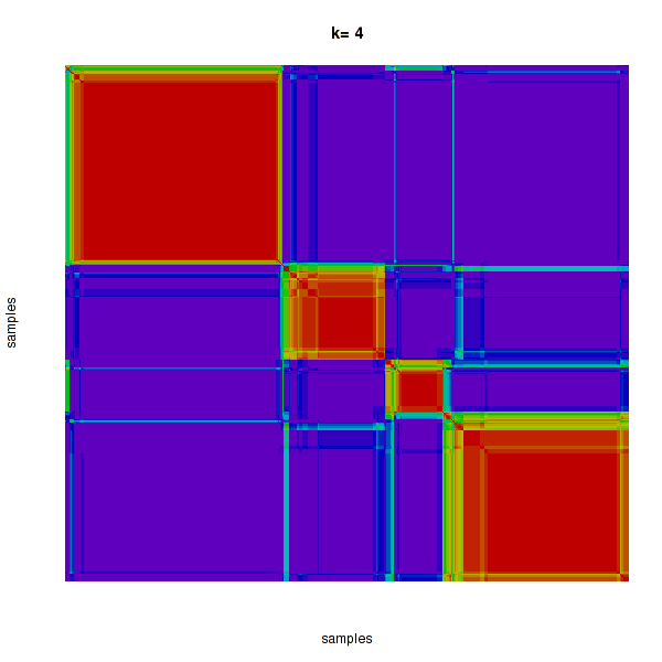 Figure 4.  Get High-res Image The consensus matrix after clustering shows 4 clusters with limited overlap between clusters.