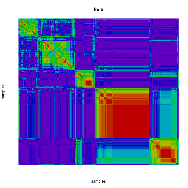 Figure 4. Get High-res Image The consensus matrix after clustering shows 6 clusters with limited overlap between clusters.