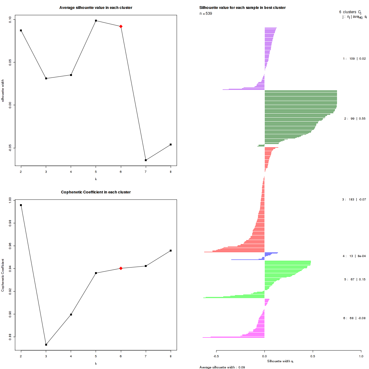 Table 1. Get Full Table List of samples with 6 subtypes and silhouette width.