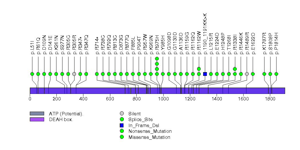 Figure S20.  This figure depicts the distribution of mutations and mutation types across the CHD4 significant gene.