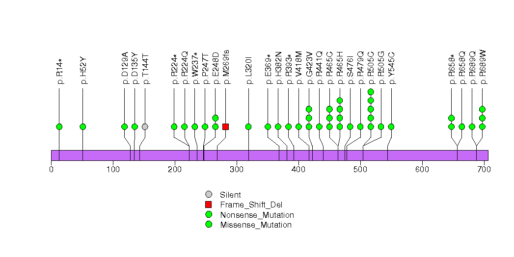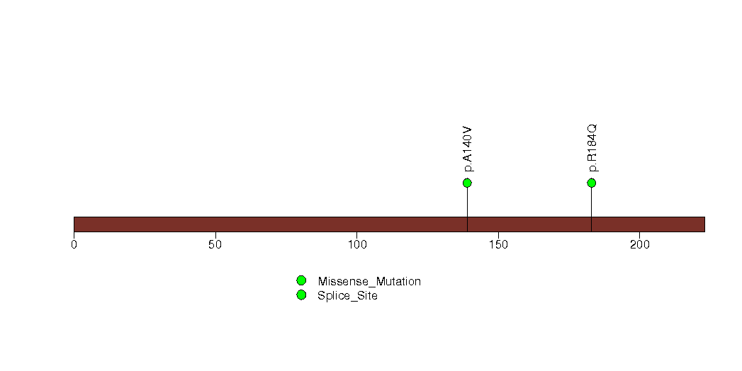 Figure S25.  This figure depicts the distribution of mutations and mutation types across the LIMK2 significant gene.