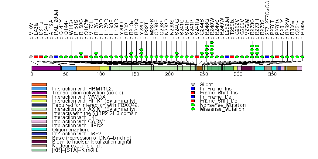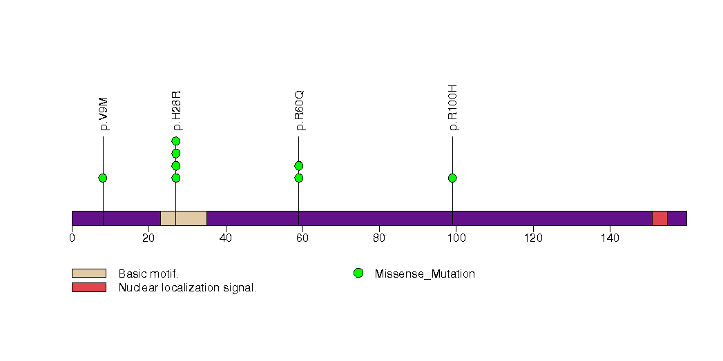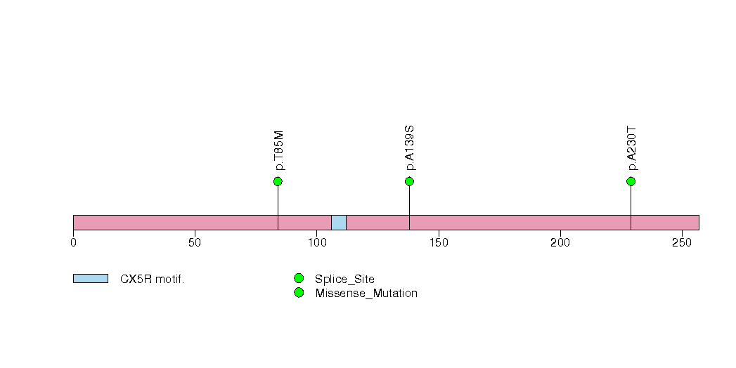 Figure S26.  This figure depicts the distribution of mutations and mutation types across the ING1 significant gene.