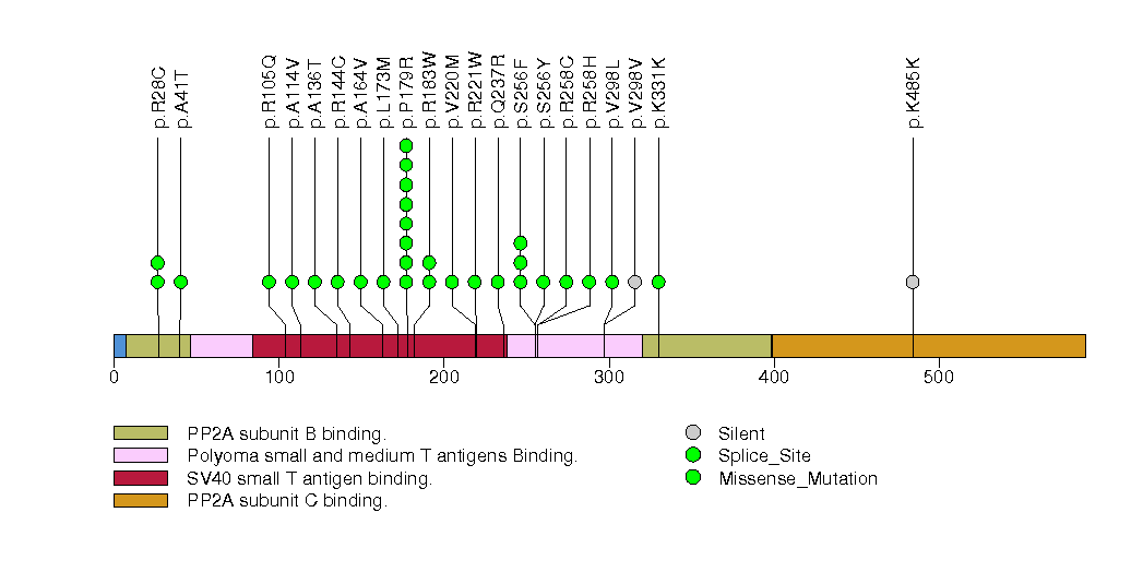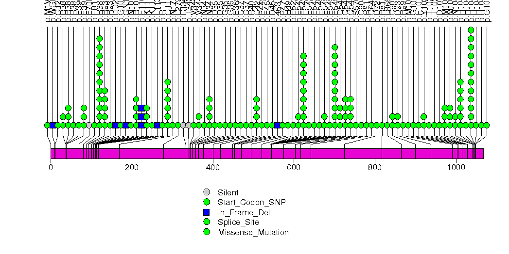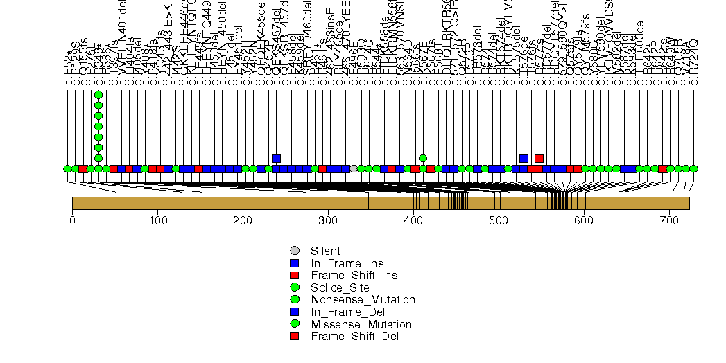 Figure S28.  This figure depicts the distribution of mutations and mutation types across the MAX significant gene.