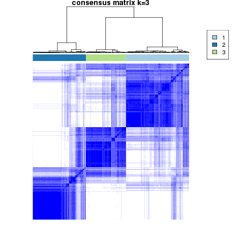 Figure 4. Get High-res Image The consensus matrix after clustering shows 3 clusters with limited overlap between clusters.