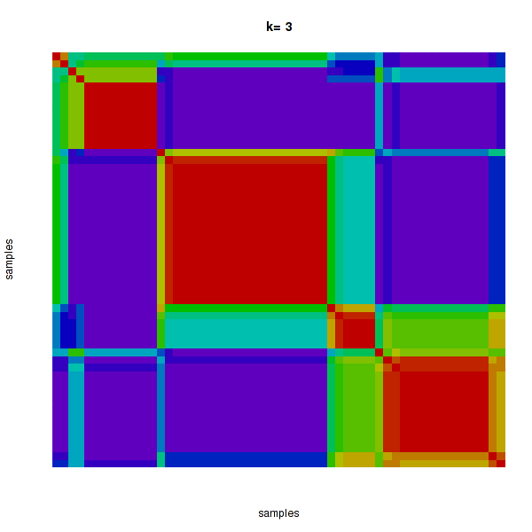Figure 4. Get High-res Image The consensus matrix after clustering shows 3 clusters with limited overlap between clusters.
