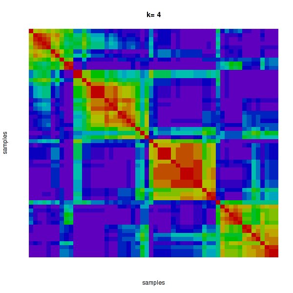 Figure 4. Get High-res Image The consensus matrix after clustering shows 4 clusters with limited overlap between clusters.