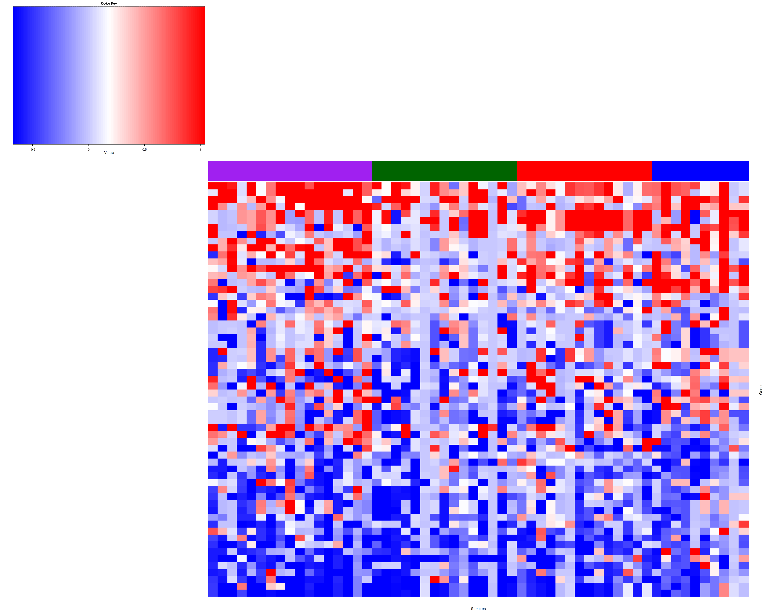 Figure 1. Get High-res Image Samples were separated into 4 clusters. Shown are 56 samples and 22 marker focal events. The color bar of the row indicates the marker focal events for the corresponding cluster.