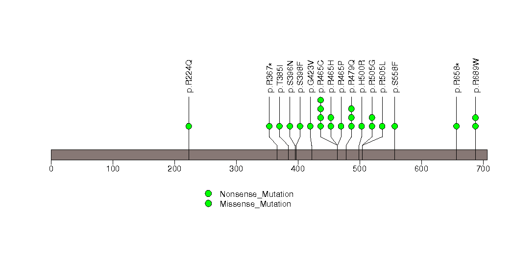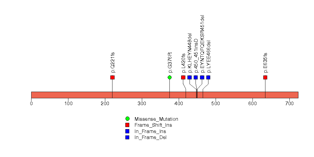 Figure S5. This figure depicts the distribution of mutations and mutation types across the PPP2R1A significant gene.