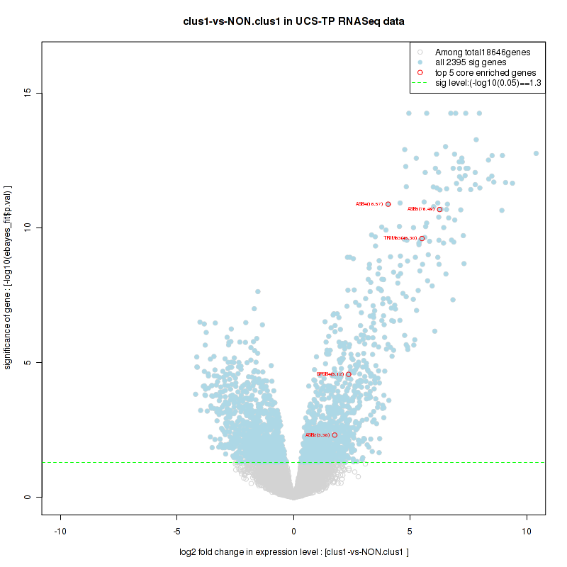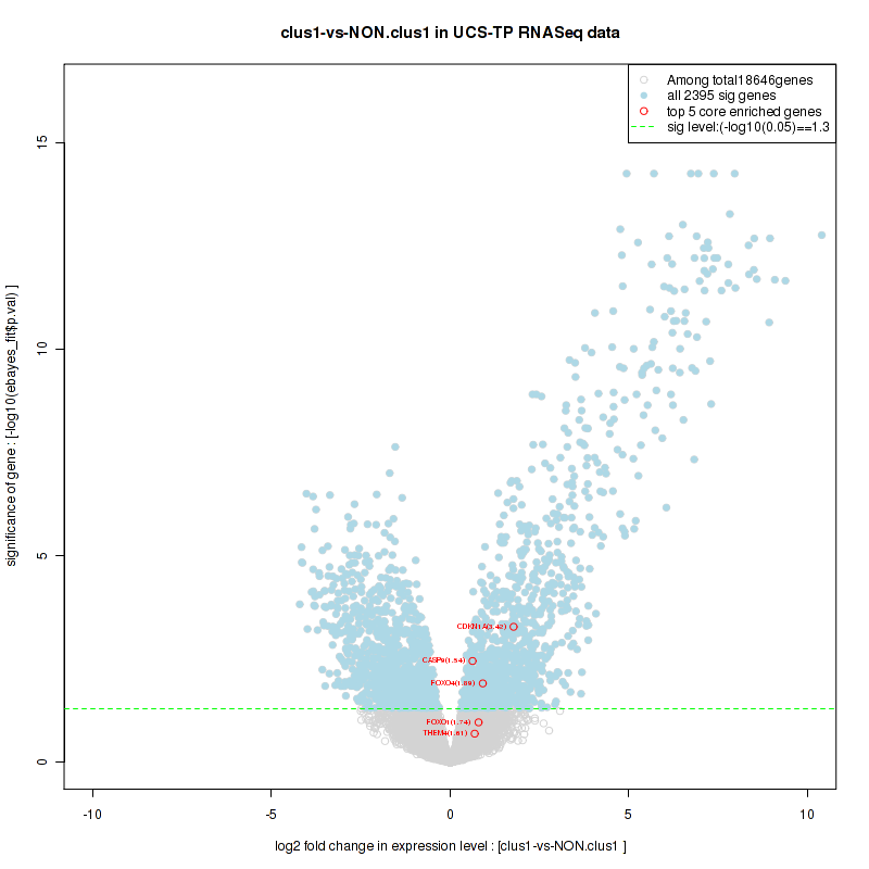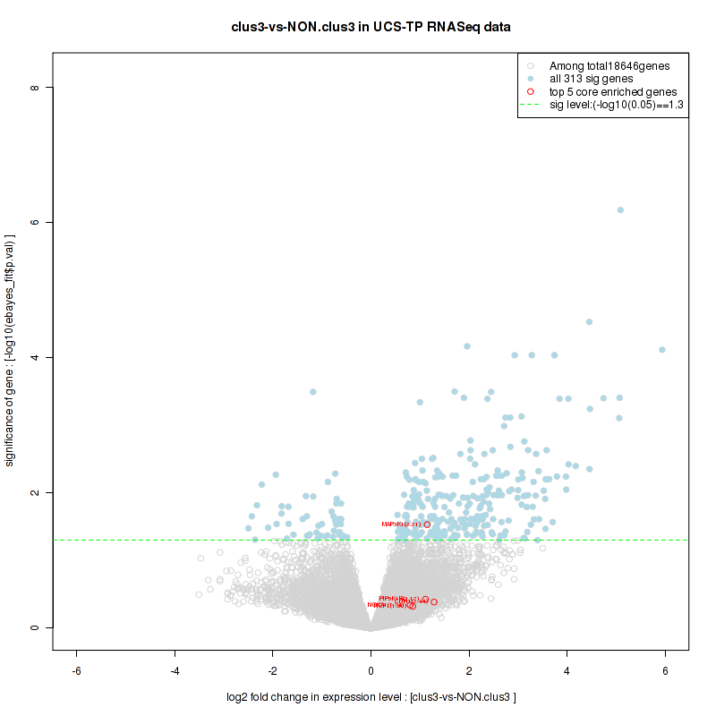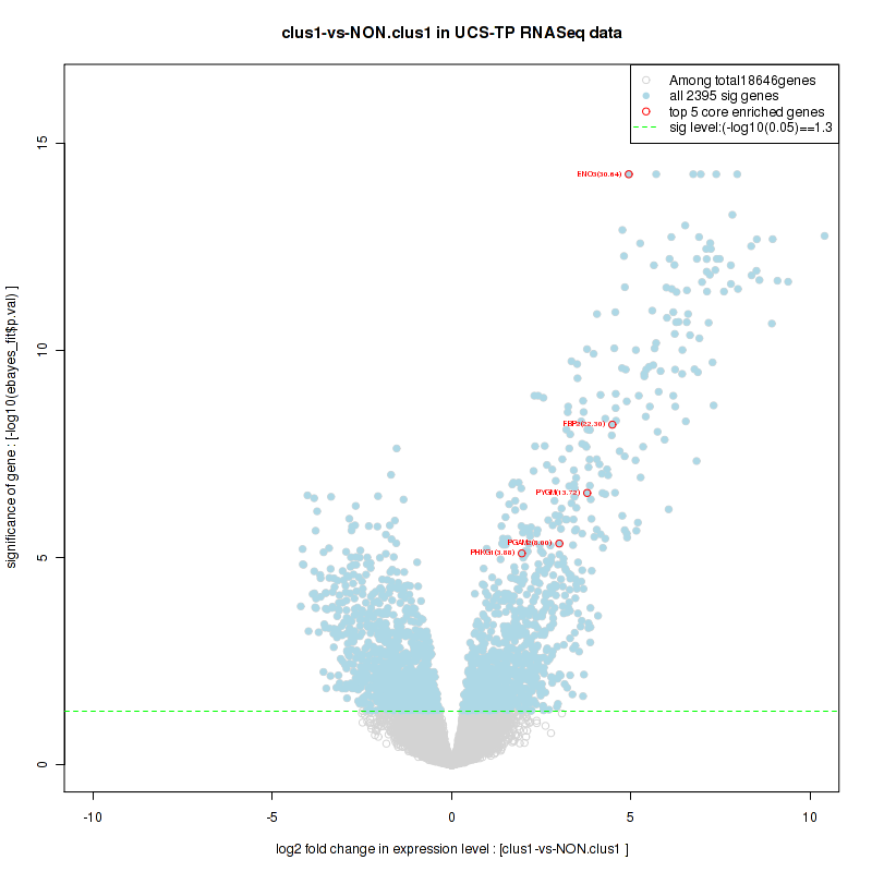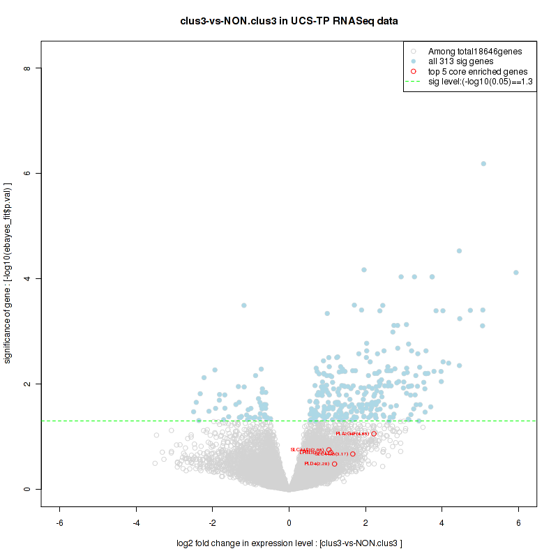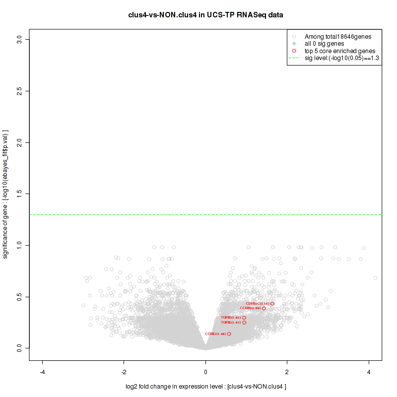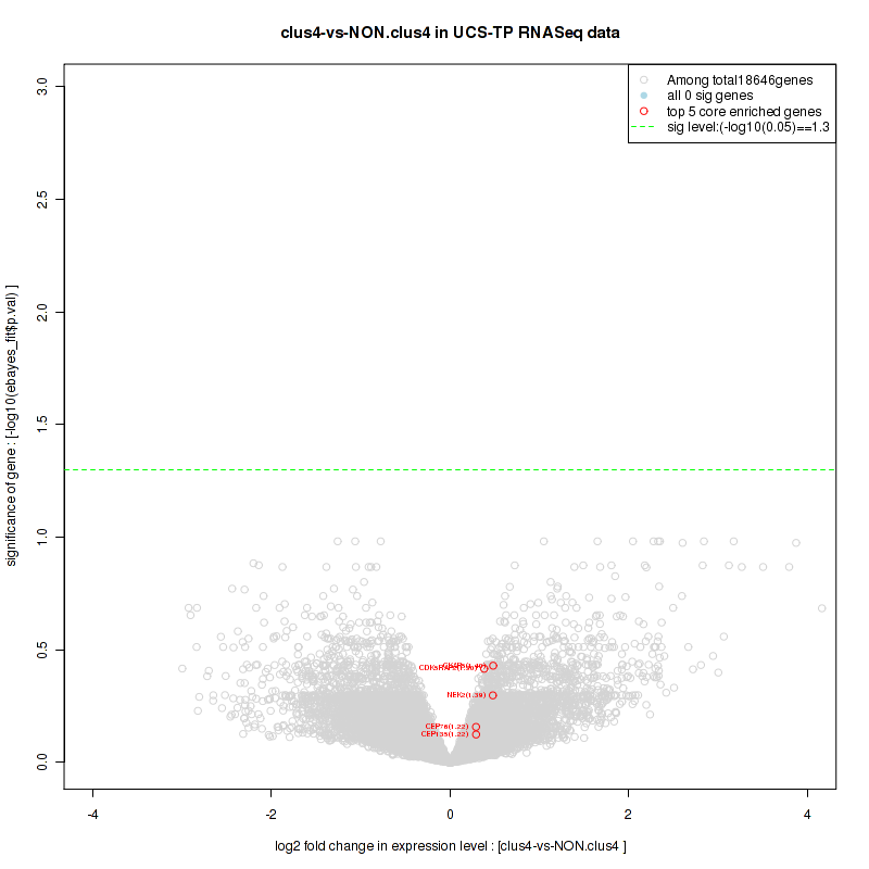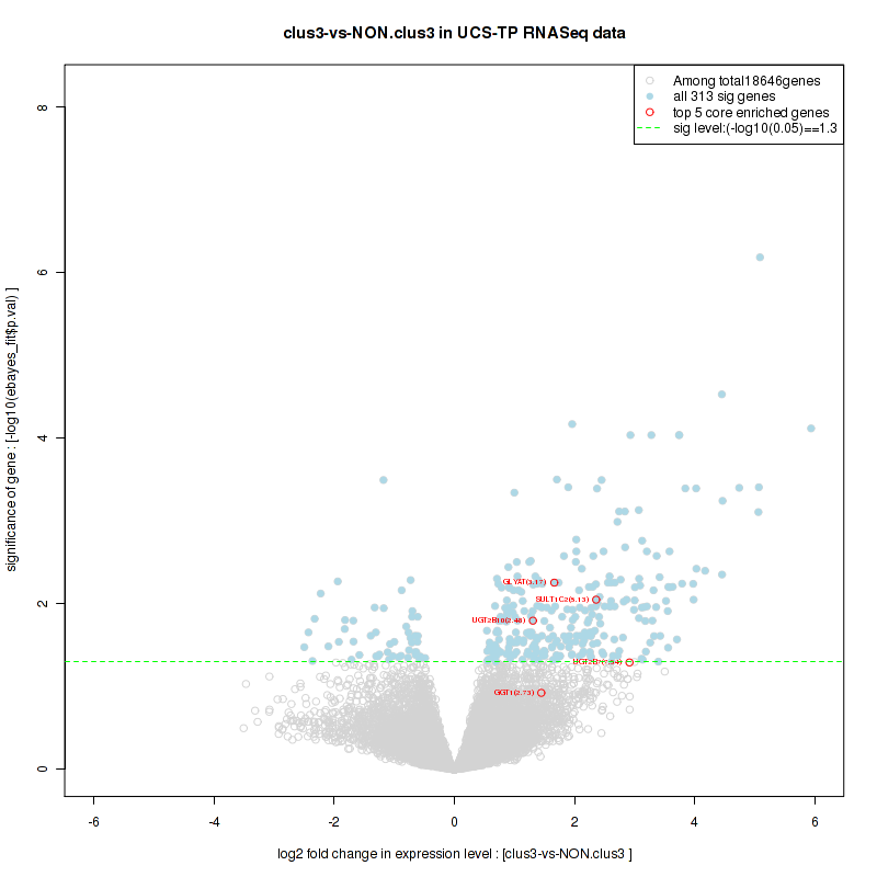 Figure S80. Get High-res Image For the top 5 core enriched genes in the pathway: REACTOME A TETRASACCHARIDE LINKER SEQUENCE IS REQUIRED FOR GAG SYNTHESIS, this volcano plot shows how much they are up/down-regulated and significant. The significance was calculated by empirical bayesian fit