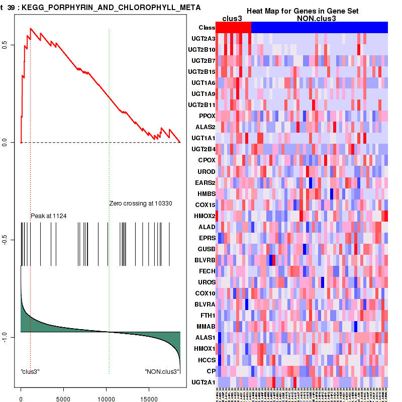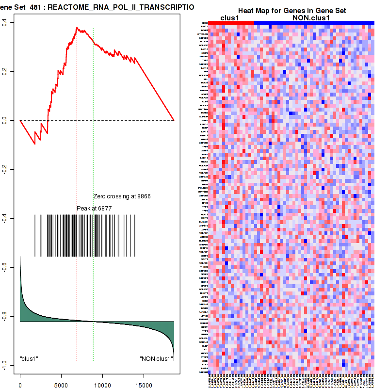 Table 3. Get Full Table This table shows top 10 pathways which are significantly enriched in cluster clus1. It displays only significant gene sets satisfying nom.p.val.threshold (-1), fwer.p.val.threshold (-1) , fdr.q.val.threshold (0.25) and the default table is sorted by Normalized Enrichment Score (NES). Further details on NES statistics, please visit The Broad GSEA website.