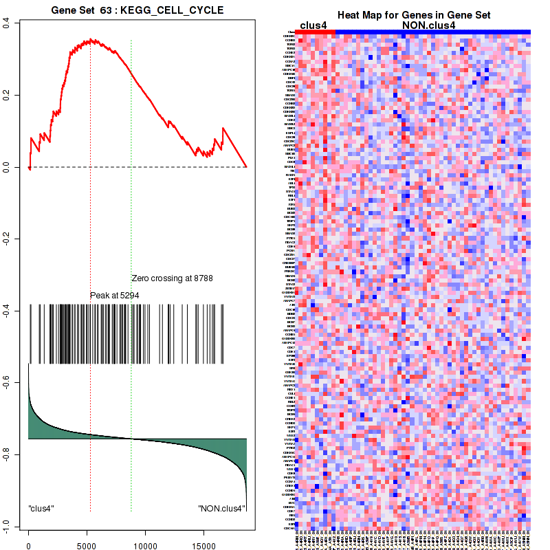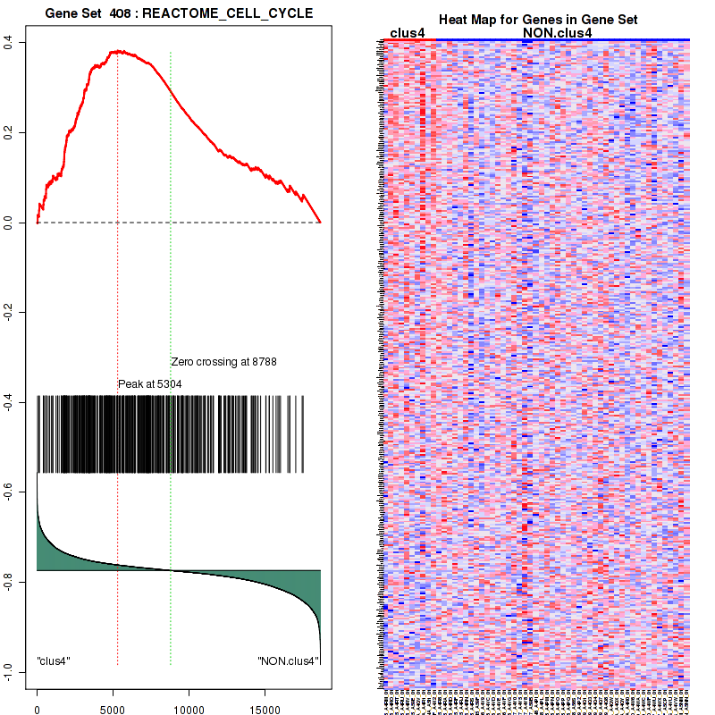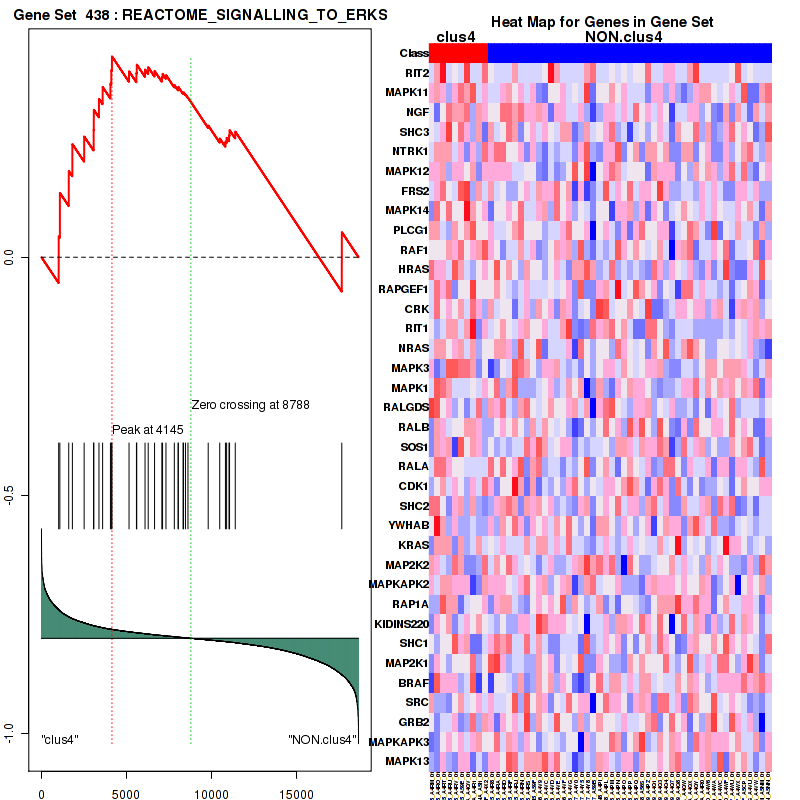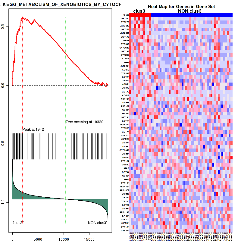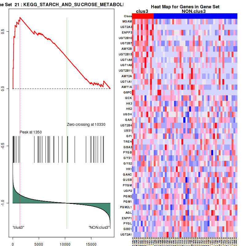 Table S1. Get Full Table This table shows a Running Enrichment Score (RES) of each gene in this pathway, that is, the enrichment score at this point in the ranked list of genes. All genes are ranked by Signal-to-Noise (S2N), a measure of similarity as default and are used to obtain ES matrix of all genes. In this way, GSEA tool uses expression pattern of not only overlapped genes but also not-overlapped genes to produce ES matrix.