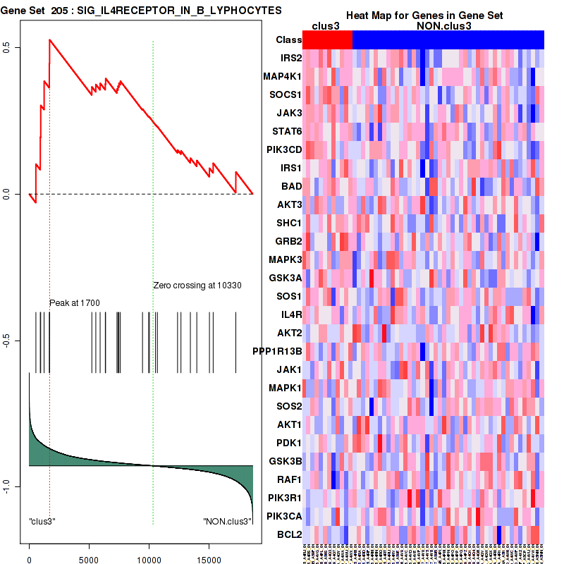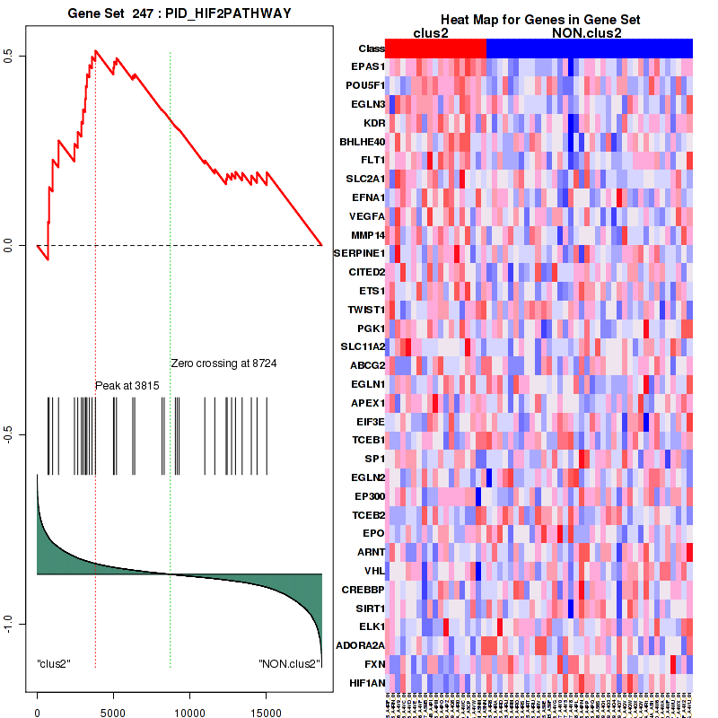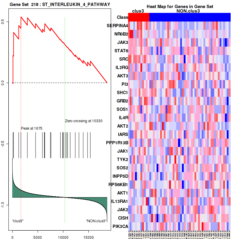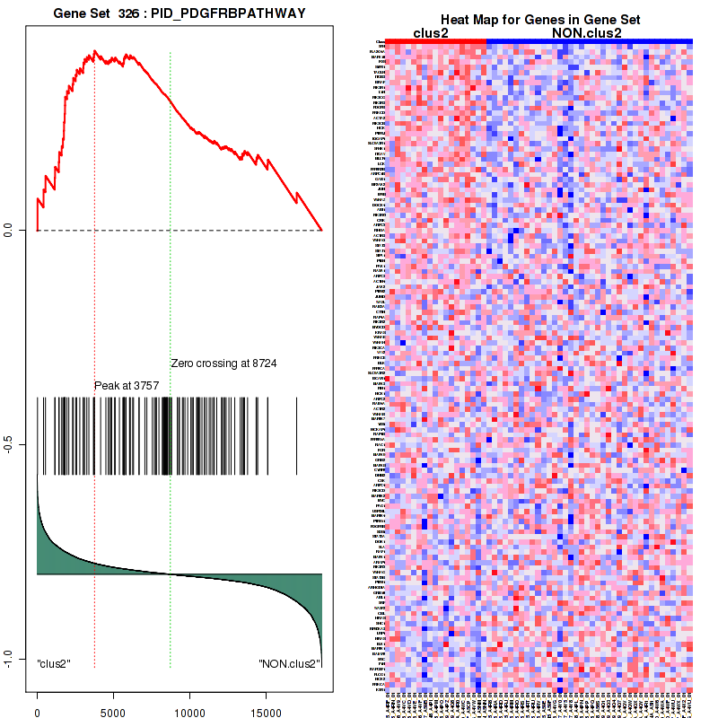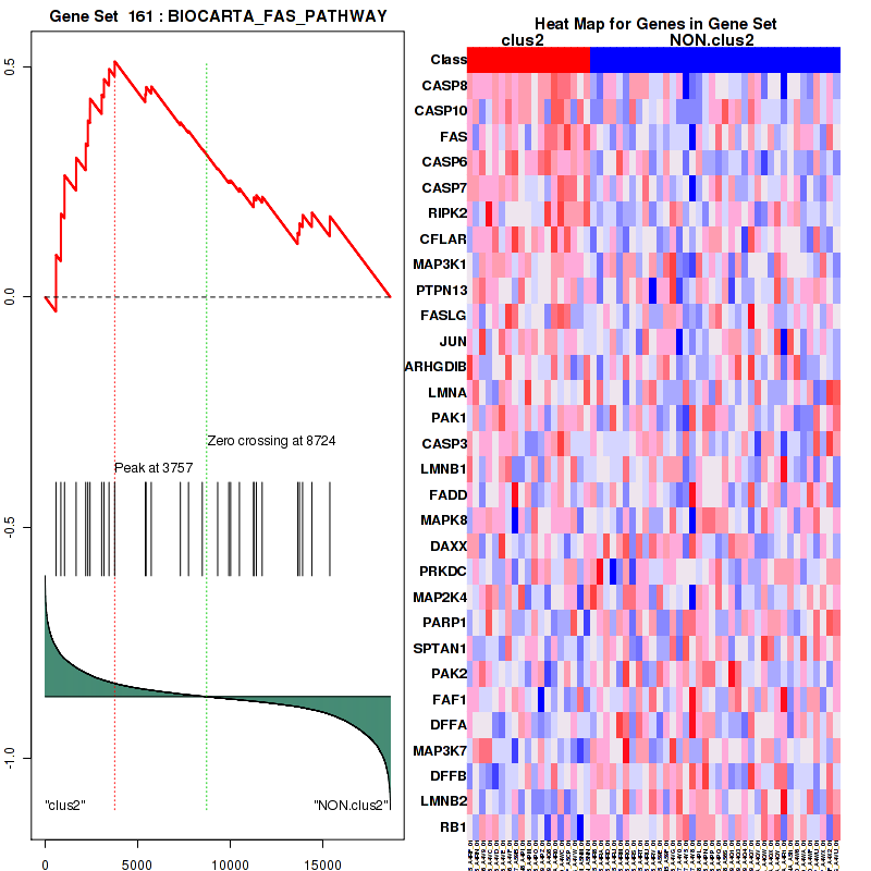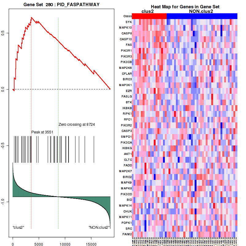 Table S1. Get Full Table This table shows a Running Enrichment Score (RES) of each gene in this pathway, that is, the enrichment score at this point in the ranked list of genes. All genes are ranked by Signal-to-Noise (S2N), a measure of similarity as default and are used to obtain ES matrix of all genes. In this way, GSEA tool uses expression pattern of not only overlapped genes but also not-overlapped genes to produce ES matrix.