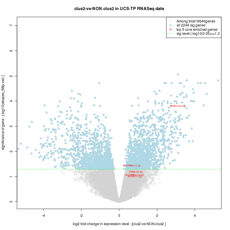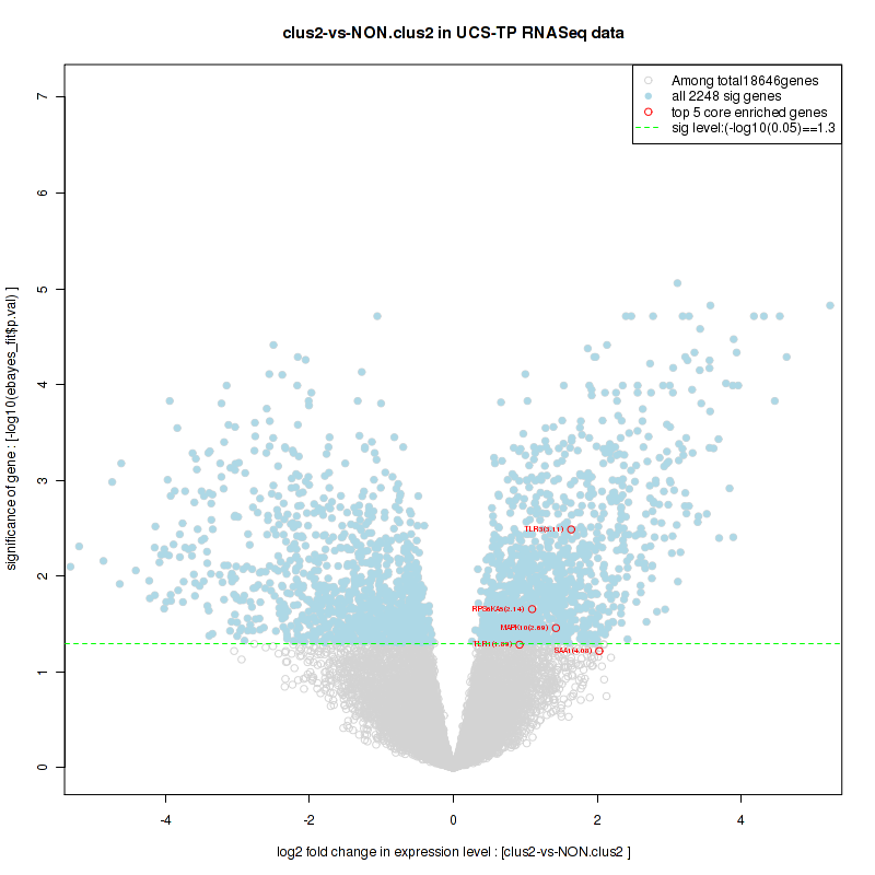 Figure S2. Get High-res Image For the top 5 core enriched genes in the pathway: KEGG AMINOACYL TRNA BIOSYNTHESIS, this volcano plot shows how much they are up/down-regulated and significant. The significance was calculated by empirical bayesian fit