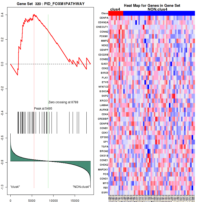 For the expression subtypes of 18665 genes in 58 samples, GSEA found enriched gene sets in each cluster using 57 gene sets in MSigDB canonical pathways. Top enriched gene sets are listed as below.