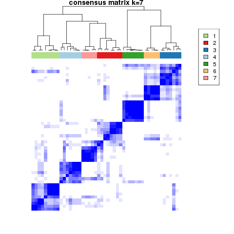 Figure 4. Get High-res Image The consensus matrix after clustering shows 7 clusters with limited overlap between clusters.