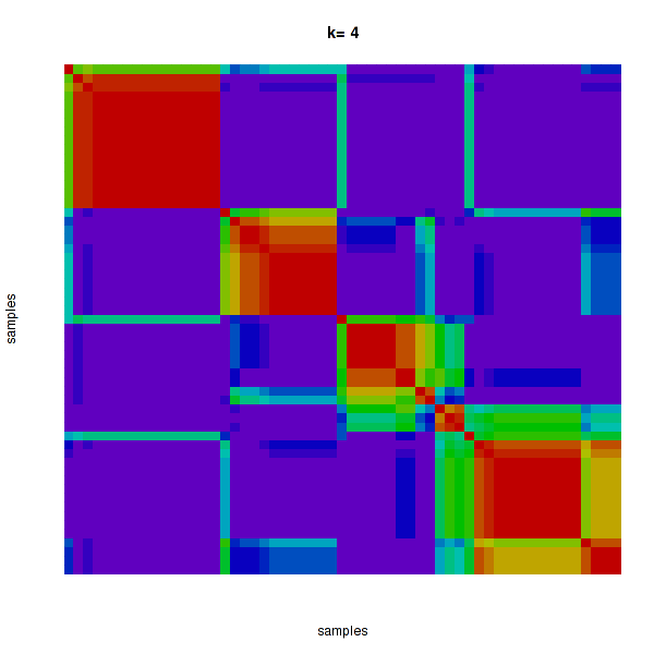Figure 4. Get High-res Image The consensus matrix after clustering shows 4 clusters with limited overlap between clusters.
