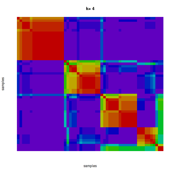 Figure 4. Get High-res Image The consensus matrix after clustering shows 4 clusters with limited overlap between clusters.